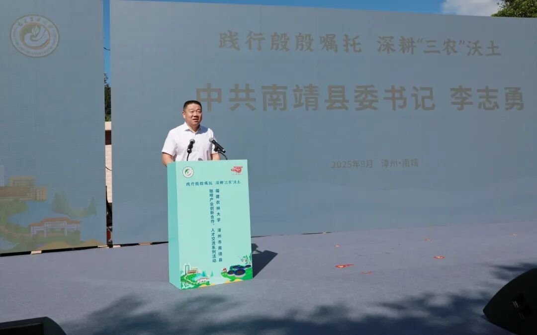 南靖新聞網9月29日訊(本中心綜合報道)9月28日上午,我縣與福建農林大學在南坑咖啡莊園舉行“踐行殷殷囑托 深耕‘三農’沃土”咖啡產業創新合作、人才交流系列活動,深入貫徹落實習近平總書記給福建農林大學全體師生的重要回信精神,推動校地合作邁上新臺階。 福建農林大學黨委書記賴海榕,漳州市政協副主席陳躍鴻,福建農林大學副校長唐振鵬,南靖縣領導李志勇、賴國賢、莊師章、吳少軍、何志榮、尤炎輝、林龍海,來自福建農林大學相關學院、部門的專家學者,以及各有關單位的負責人參加活動。